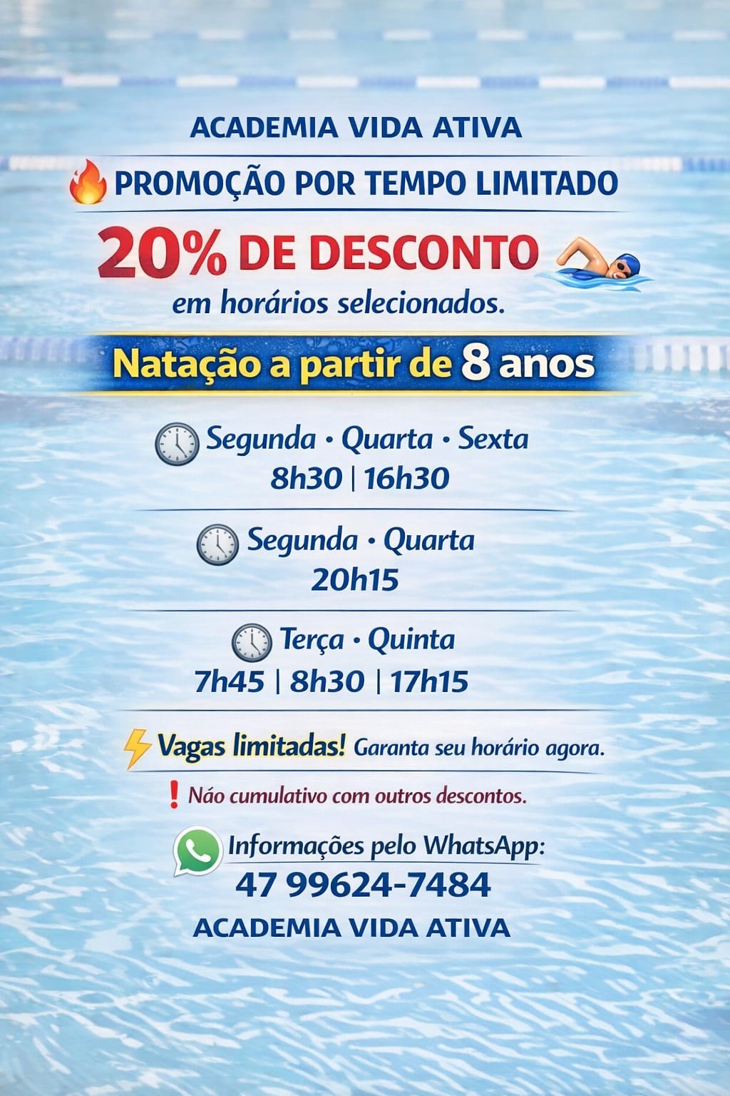 A MAIOR piscina da cidade, além de ser aquecida. Venha fazer uma aula experimental!